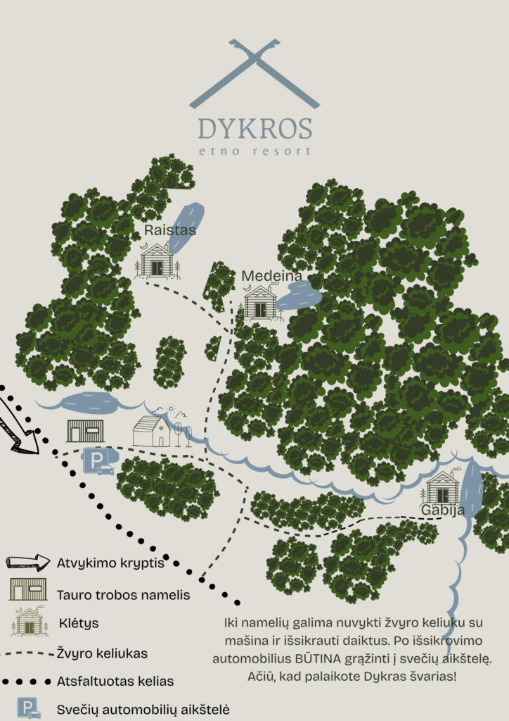 Sveiki atvykę į Dykras. Šis žemėlapis Jums padės rasti kelią iki Jūsų namelio. Gero poilsio!